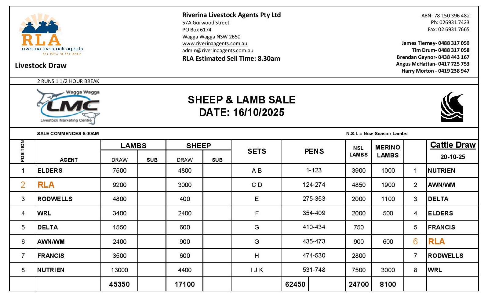 Wagga Sheep Draw 16/10/2025