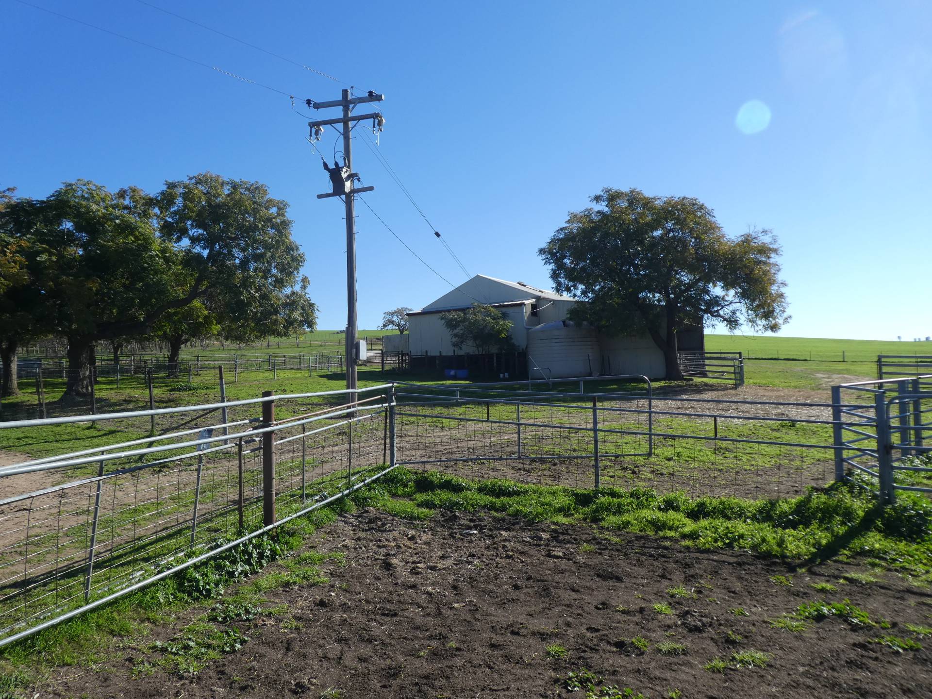3 stand electric woolshed, steel sheep yards, Steel cattle yards in centre  of property plus small set at the  front of property. Steel machinery shed with workshop and power 40x40, steel machinery shed 80 x 40, Steel hay shed, 2 Silos : 65 tonne 40 tonne