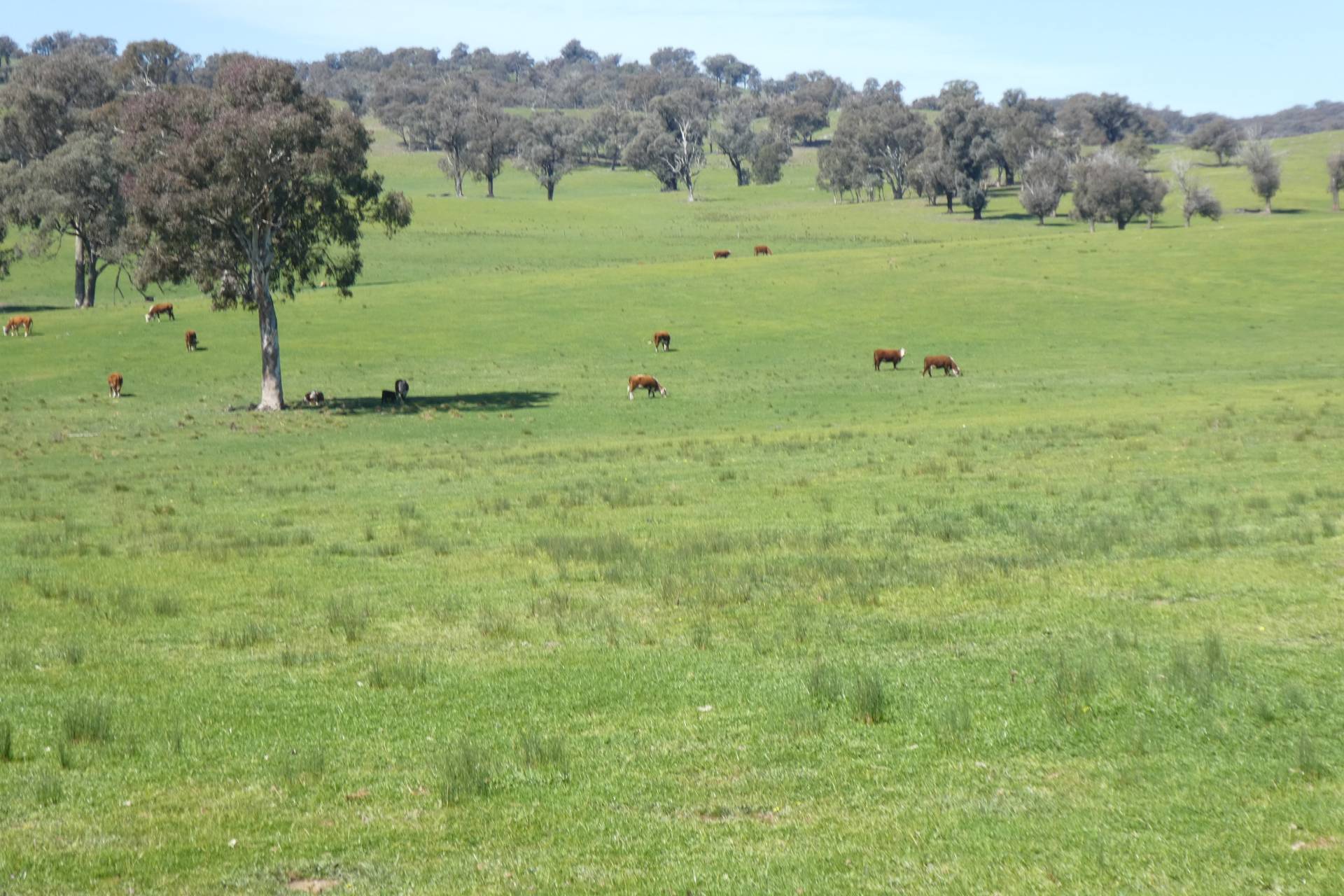 UNDULATING TO TIMBERED HILL WITH PASTURE IMPROVED VALLEYS. 2 PADDOCKS . TOPDRESSED REGULARLY. 4 DAMS. 26" RAINFALL