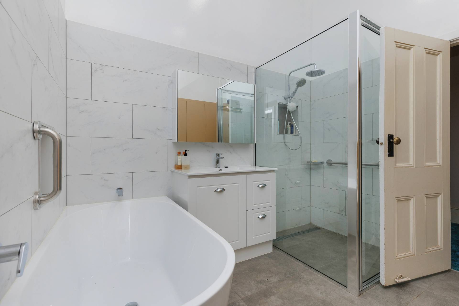 Substantial, well maintained weather board home. 4 large bedrooms, lounge, kitchen/living, bathroom, laundry, office, utility rooms. 4m ceilings. Evaporative air conditioning, gas heating and hot water. Re roofed in recent times, renovated kitchen with wall oven plus plate warmer, induction cooktop, dishwasher and bathroom. 2.5 KVA Solar connected. Town water to house.